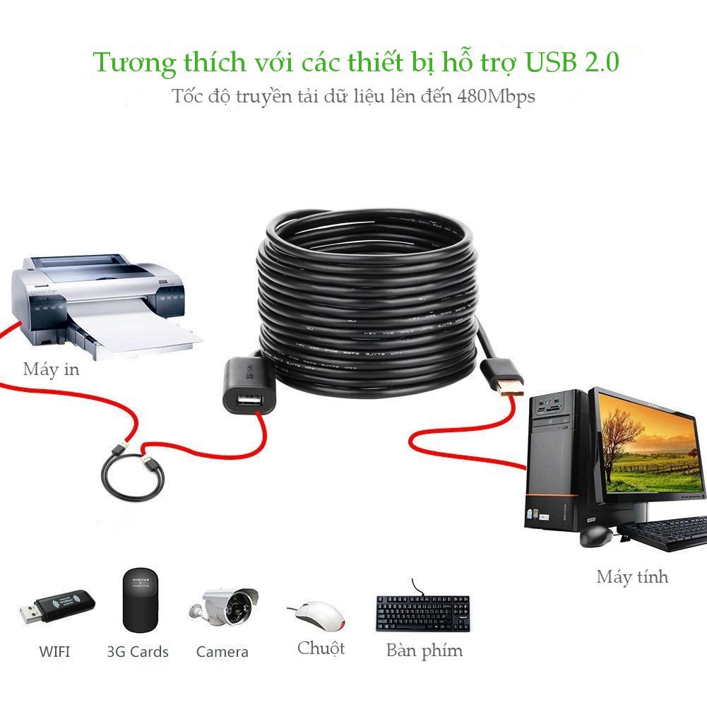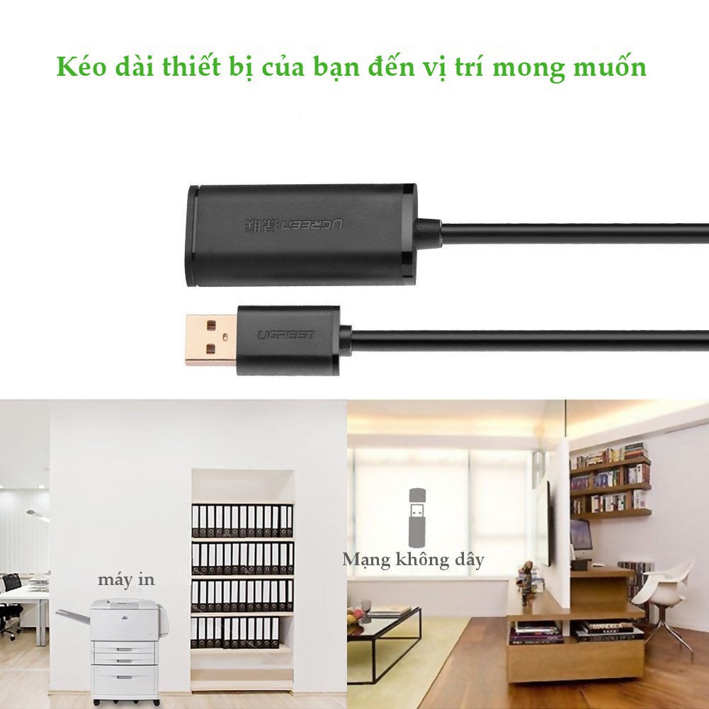 Cáp nối dài USB 2.0 15M chính hãng Ugreen 10323 mạ vàng, IC khuếch đại