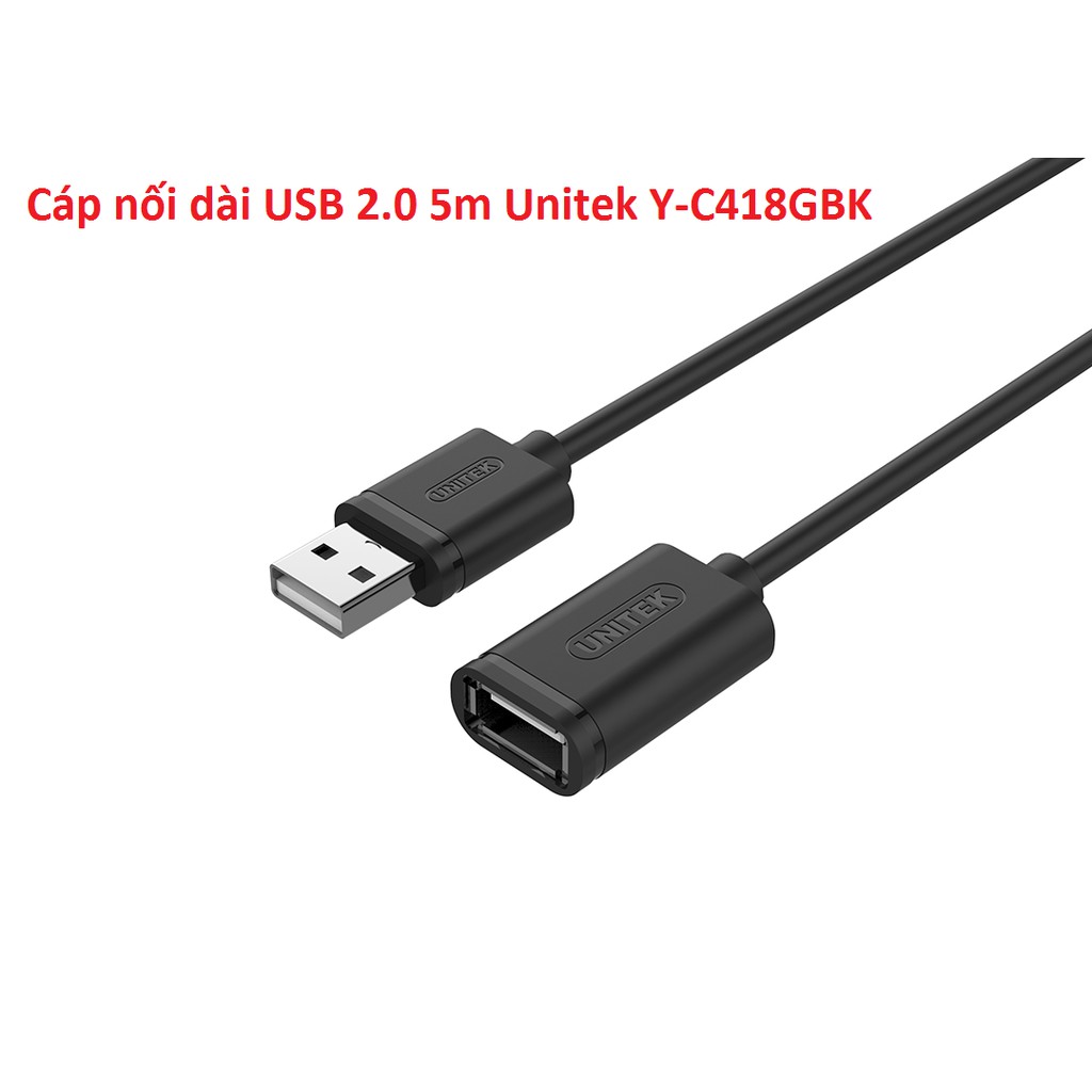 Máy tính & Laptop > Thiết Bị Lưu Trữ > USB & OTG || Cáp nối dài USB 2.0 5m Unitek Y-C418GBKCòn hàng