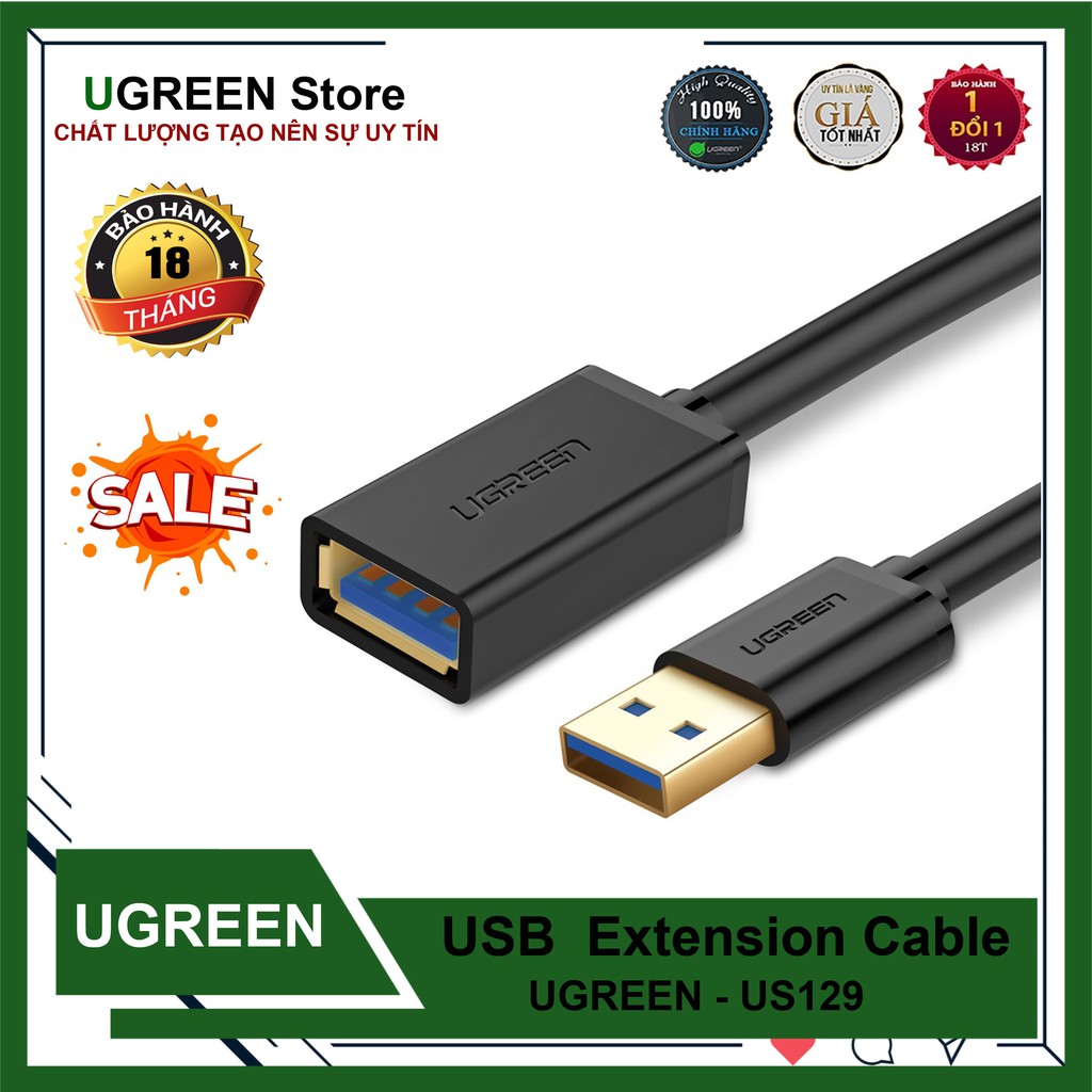 Máy tính & Laptop > Thiết Bị Lưu Trữ > USB & OTG || Cáp Nối Dài USB 3.0 Cao Cấp UGREEN US129 - Hàng Chính HãngCòn hàng