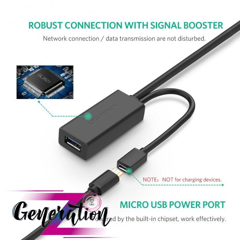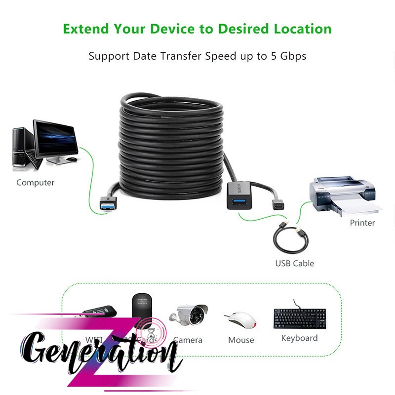 Cáp Nối Dài USB 3.0 Dây Dẹt Cao Cấp UgreenCáp nối dài USB 3.0 dây dẹt Ugreen cho phép bạn mở rộng khoảng cách kết nối các thiết bị USB như ổ đĩa, ổ cứng, đầu đọc thẻ, USB 3.0 hub, máy in, máy ảnh ... với tốc độ hỗ trợ lên đến 5Gbps (Super Speed). Cáp USB 3.0 Extender Ugreen có tích hợp chipset khuếch đại mang đến khả năng dẫn truyền tín hiệu tốc độ cao ở cự ly xa mà vẫn ổn định trong thời gian dài sử dụng.