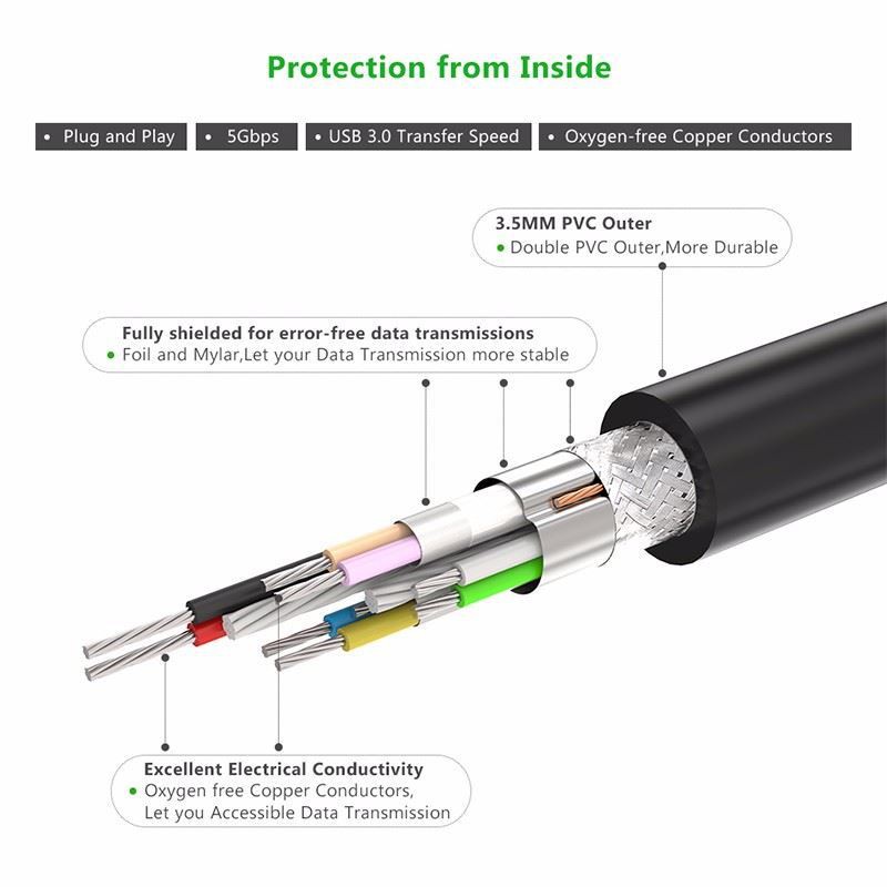 -Cáp nối dài USB 3.0 Ugreen 20826 cho phép bạn mở rộng ổ đĩa của bạn flash, ổ cứng, đầu đọc thẻ, USB 3.0 hub, máy in, máy ảnh ... với tốc độ lên đến 5Gbps (Super Speed).