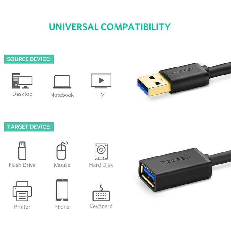 Ugreen UG-10373 là sản phẩm chuyên dụng để kéo dài USB 3.0 từ dương sang âm, cáp cho phép mở rộng ổ đĩa của bạn flash, ổ cứng, đầu đọc thẻ, USB hub 3.0, máy in, máy ảnh,...