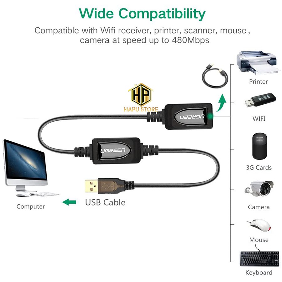 Giới thiệu Cáp nối dài USB Ugreen 10323 chuẩn USB 2.0 dài 15m chính hãng - Hapustore