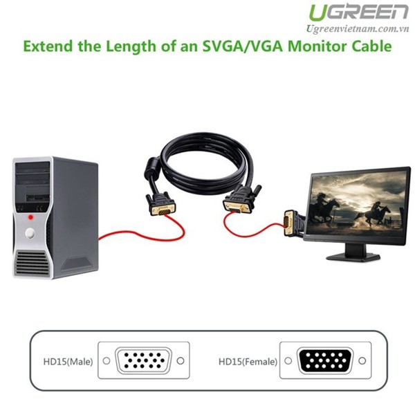 Giới thiệu Cáp nối dài VGA 3m Ugreen 11615 Chính hãng