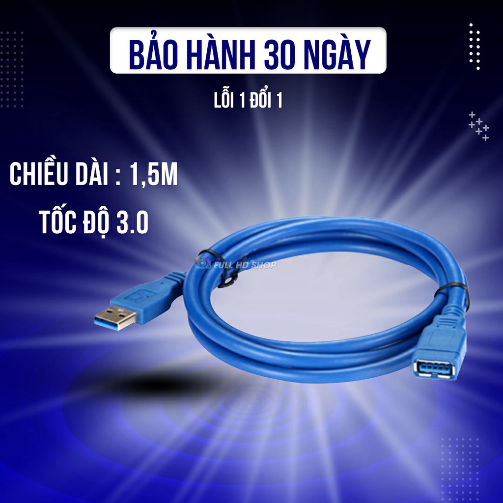 Giới thiệu Cáp nối usb 3.0 - Dây nối cổng USB dài 1,5m tốc độ cao - Full HD Shop Mã HD20