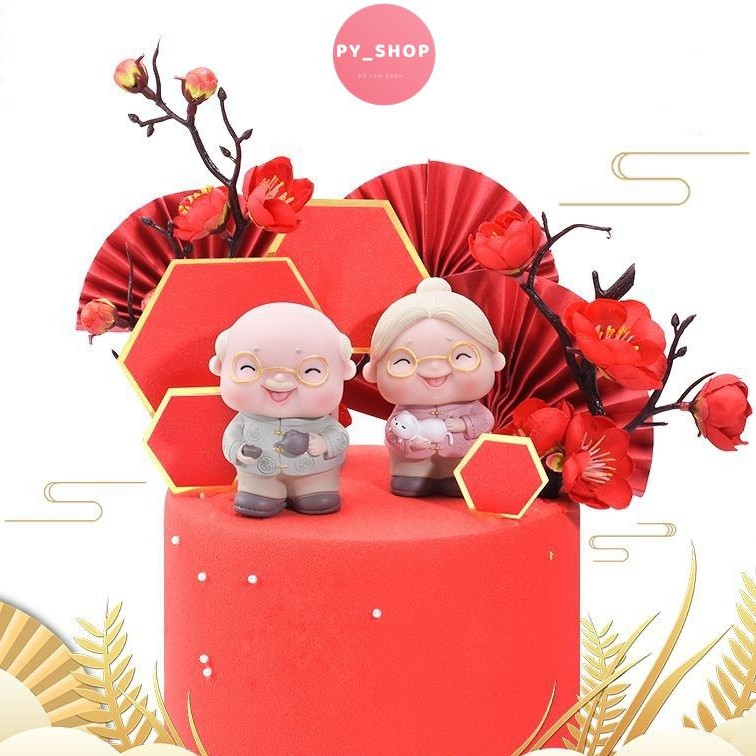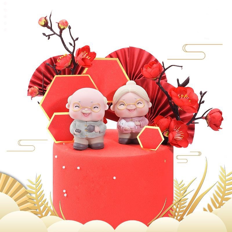 Ông bà cụ đeo kính- Dùng trang trí bánh kem, bánh sinh nhật, tiểu cảnh trang trí, lưu niệm...