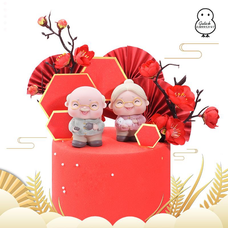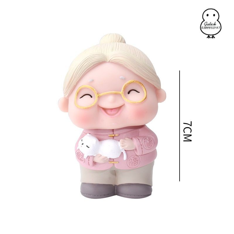 Ông bà cụ đeo kính- Dùng trang trí bánh kem, bánh sinh nhật, tiểu cảnh trang trí, lưu niệm...