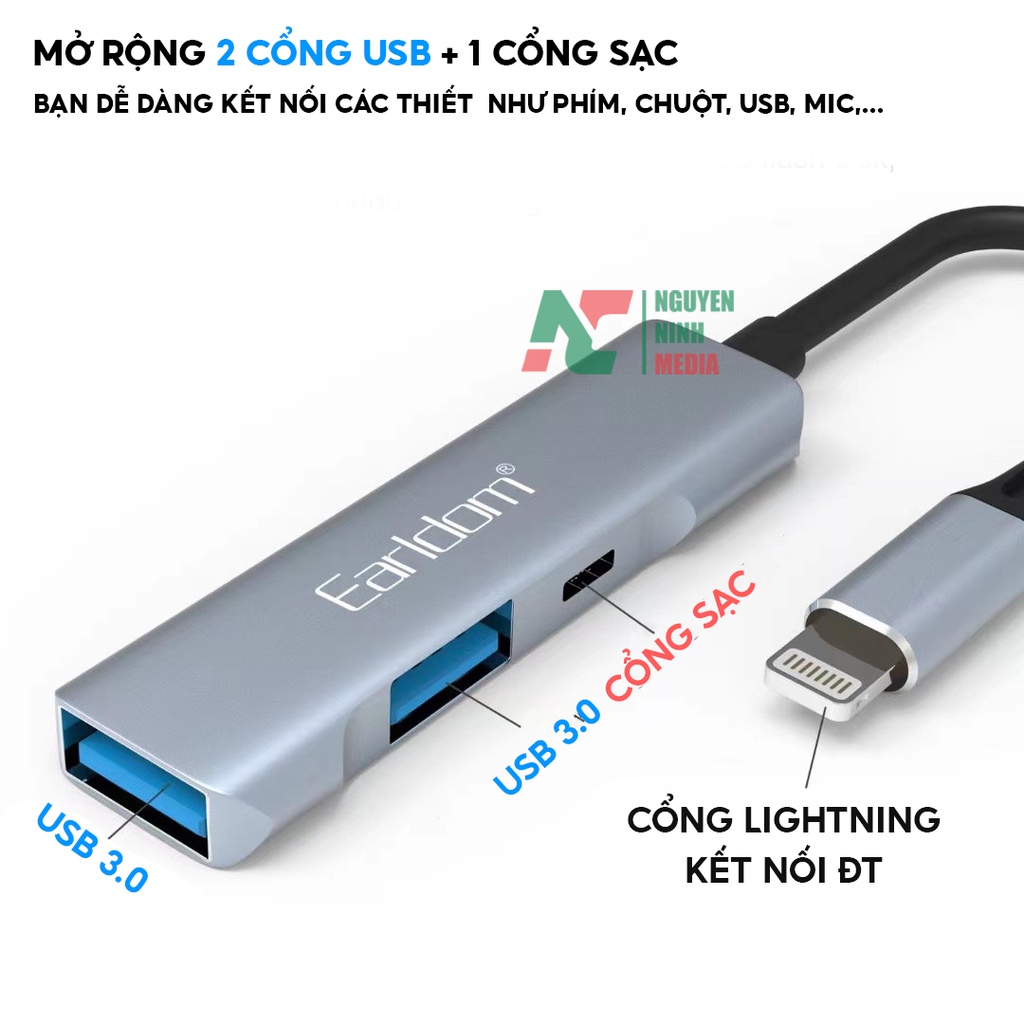 Máy tính & Laptop > Thiết Bị Lưu Trữ > USB & OTG || Cáp OTG Dành Cho iPhone, iPad Earldom HUB11 - Hỗ Trợ Cắm Phím, Chuột, USB , Midi Controller - Hàng Chính HãngCòn hàng