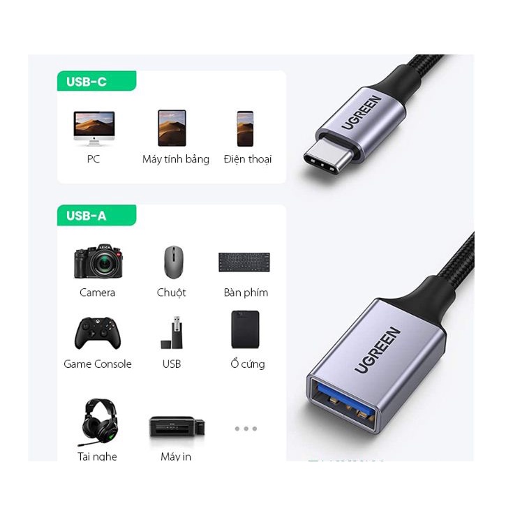 Máy tính & Laptop > Thiết Bị Lưu Trữ > USB & OTG || Cáp OTG USB TYPE-C sang USB 3.0 Ugreen 70889 (Vỏ Nhôm Bọc Dù)Còn hàng