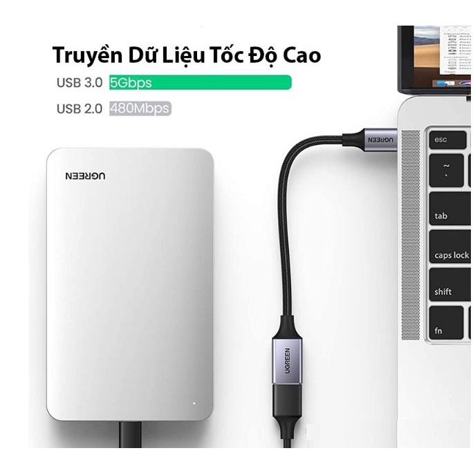 Cáp chuyển USB Type C sang USB 3.0 cao cấp Ugreen 70889 là phụ kiện chuyên dùng để kết nối máy tính, macbook, điện thoại cổng USB-C của bạn với các thiết bị ngoại vi cổng USB như chuột, bàn phím, ổ cứng di động.... hỗ trợ USB 3.0 mang đến tốc độ truyền tải tín hiệu lên đến 5Gbps.