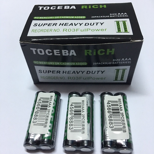 - Pin đũa AAA 1,5V Toshiba chính hãng- Quy cách : 2 viên. vỉ, 40 vỉ/ hộp