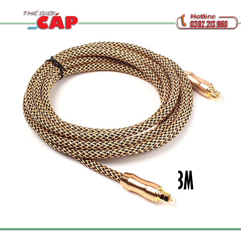 Toslink Optical Cáp quang âm thanh chuyên dùng để kết nối các thiết bị xuất âm thanh đầu ra Optical quang như Xbox 360,PS3, HD Media Player,…sang cổng âm thanh quang của các thiết bị xử lí âm thanh (Card Sound, Aplifier,…) cho ra âm thanh 5.1, 7.1 trung thực, sống động và hay nhất.Đầu Toslink Optical Cáp quang âm thanh được mạ vàng 24k làm tăng khả năng tiếp xúc và tránh bị rỉ sét theo thời gian Cáp được thiết kế có đầu chụp nhựa bảo vệ ống quang học khi không cắm thiết bị hoặc để chờ Để ngăn chặn sự tác động của ánh sáng bên ngoài vào hai đầu sợi cáp, thiết bị được thiết kế nhiều lớp nhựa bọc bên ngoài và chất liệu nhựa rất tốt.