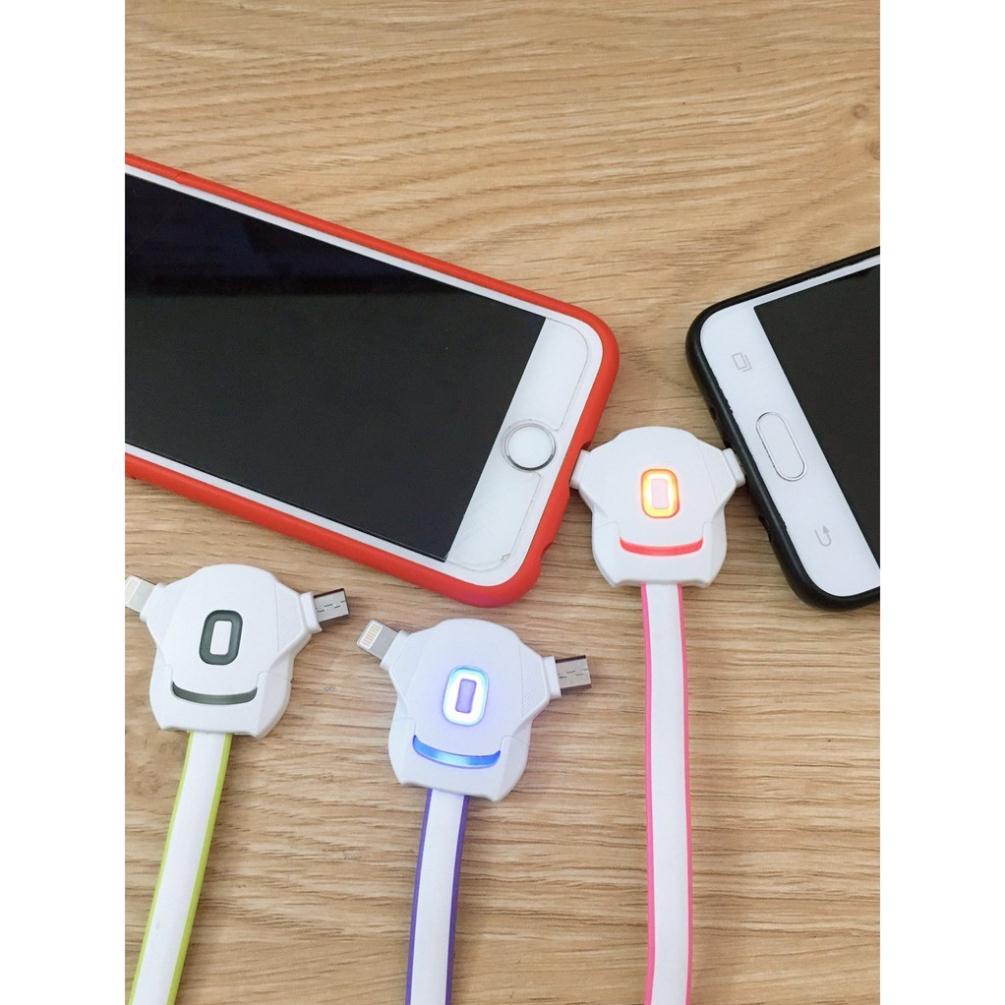 Cáp sạc đa năng 2in1, cáp sạc 2 đầu micro usb - iphone có đèn led báo đầy thông minh- Chân cắm sạc khít, không lỏng lẻo.