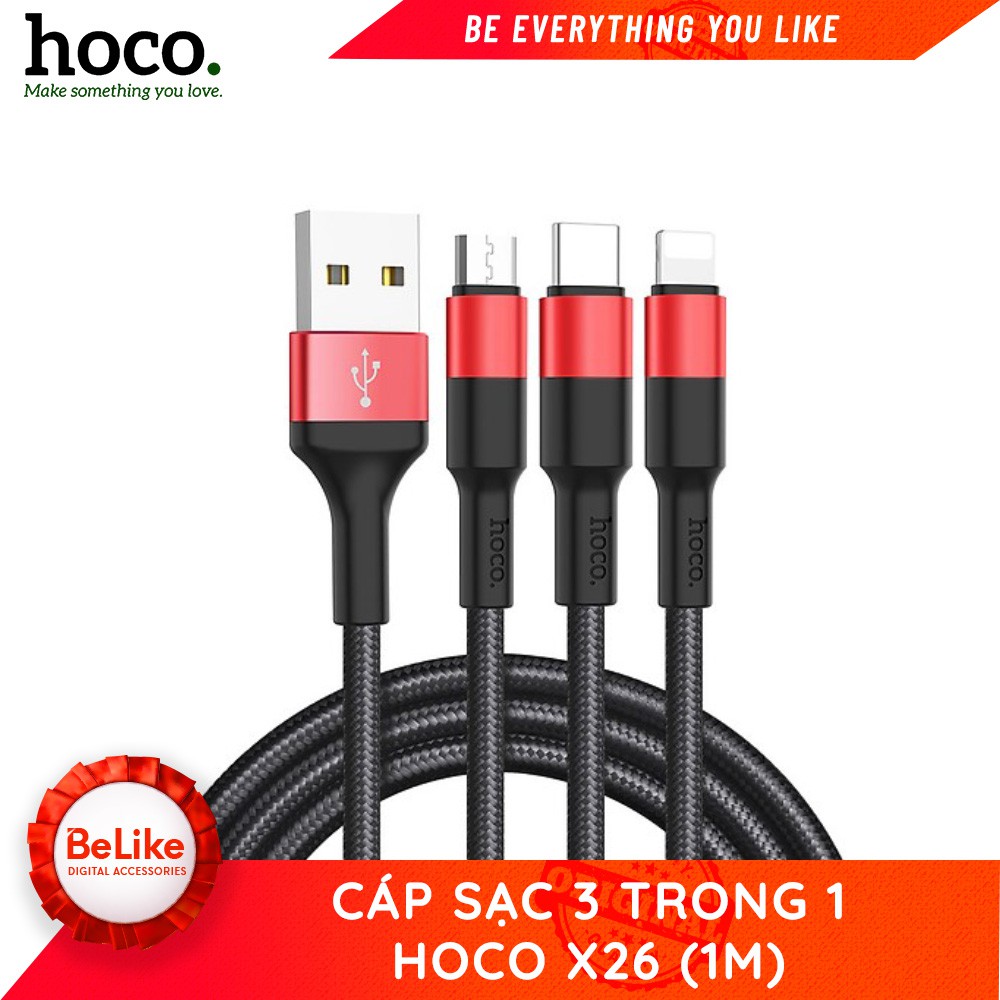 Cáp sạc 3 đầu HOCO X26 dài 1m - BH Toàn quốc