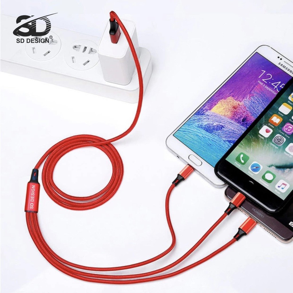 Cáp Sạc 3 Đầu L2 chính hãng SD Design đa năng 3in1 Lightning - Micro - Type C Dây Dù Sạc cho Samsung Oppo Xiaomi iPhonePHỤ KIỆN SD DESIGN - CHUYÊN SỈ LẺ GIÁ GỐC PHỤ KIỆN ĐIỆN THOẠI