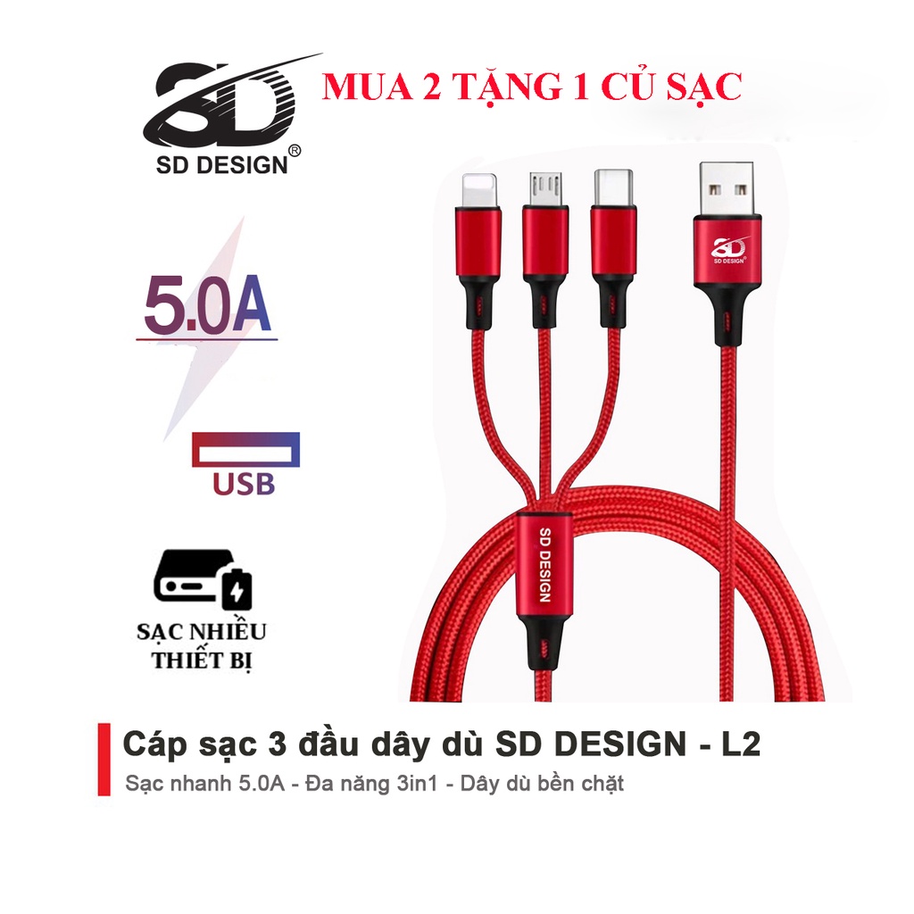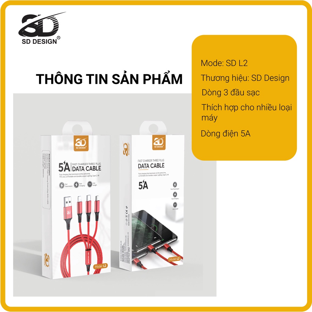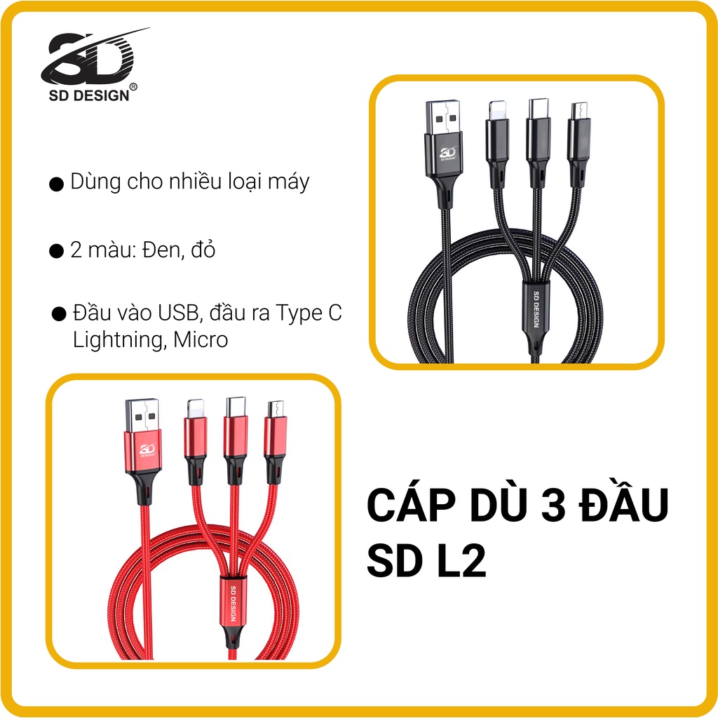 Chi tiết sản phẩm cáp sạc 3 đầu L2 chính hãng SD Design:
