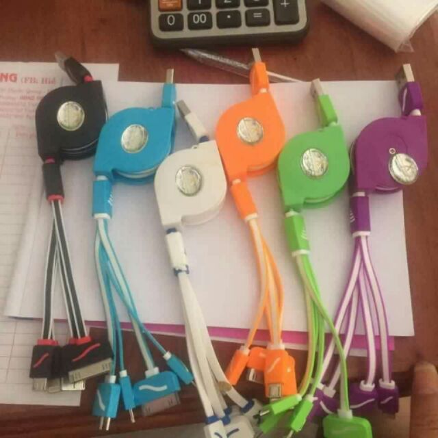 Cáp sạc 4 đầu có dây rút