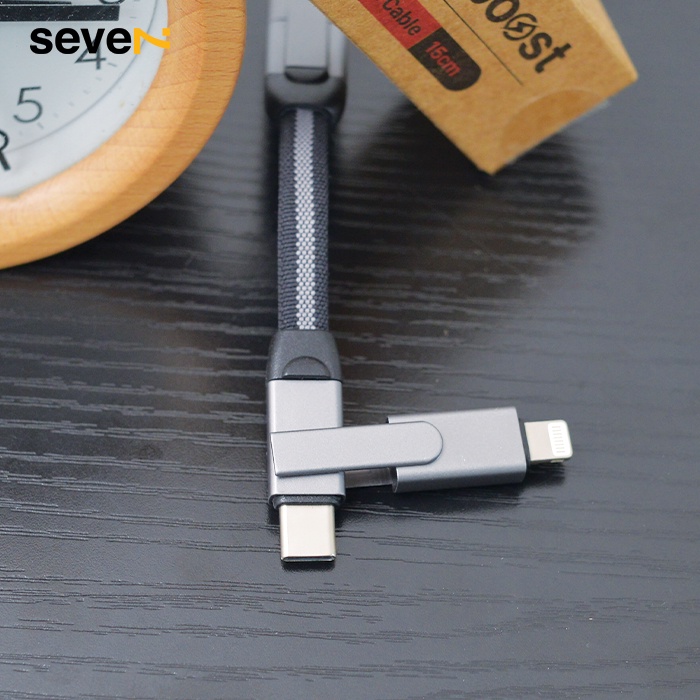 Cáp sạc 4 trong 1 Velasboost – 3 công nghệ sạc hiện đại tích hợp trong chiếc cáp sạc nhỏ nhắn, tiện lợiNếu như bạn quá chán về việc quá nhiều dây sạc rườm ra, làm rối và bừa bộn bàn làm việc. Thì hôm nay, Seven giới thiệu đến bạn một giải pháp cực tiện lợi, tích hợp cả 3 công nghệ hiện đại chỉ trong 1 chiếc cáp sạc, đến từ thương hiệu Việt. Đó chính là cáp sạc 4 trong 1 Velasboost. Gồm 3 đầu sạc phổ biến nhất hiện nay: lightning, usb và type C. Bạn có thể vừa sạc cho cả Android và iPhone. Hãy cùng Seven tìm hiểu chi tiết về dòng sản phẩm này nhé!