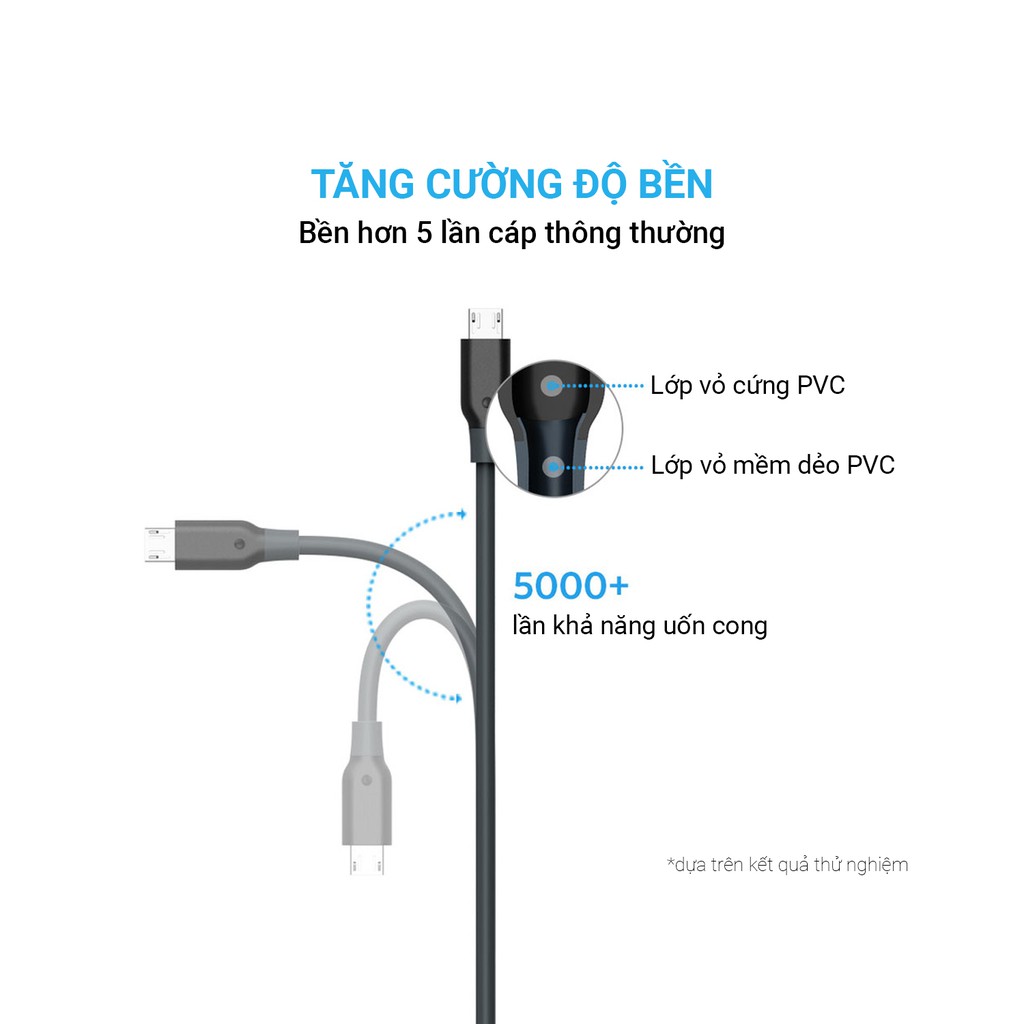 Cáp sạc ANKER PowerLine Micro USB Dài 1.8m, dùng cho Android sử dụng cổng sạc MicroUSB - A8133