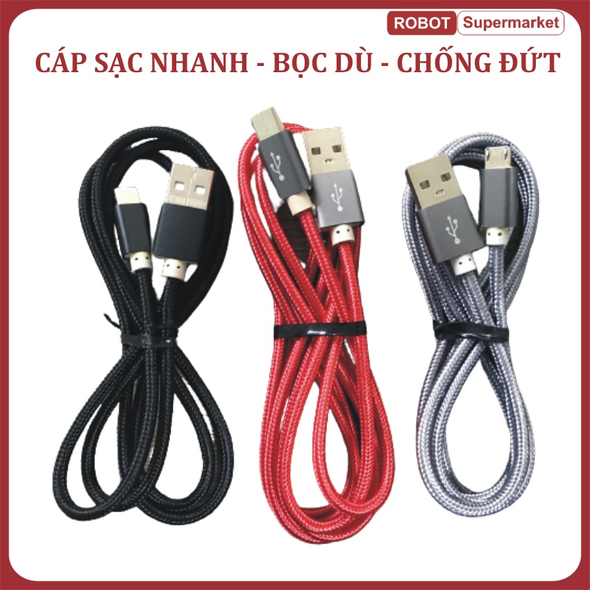 Điện Thoại & Phụ Kiện > Phụ kiện > Cáp, sạc & bộ chuyển đổi > Cáp & Bộ chuyển đổi di động || Cáp Sạc Bọc Dù Cổng Lightning/Micro/TypeC Hỗ Trợ Sạc NhanhCòn hàng
