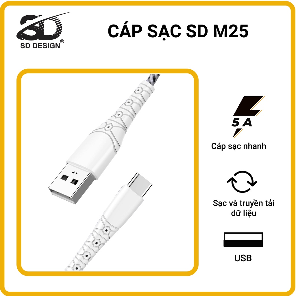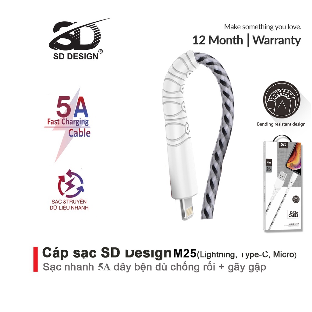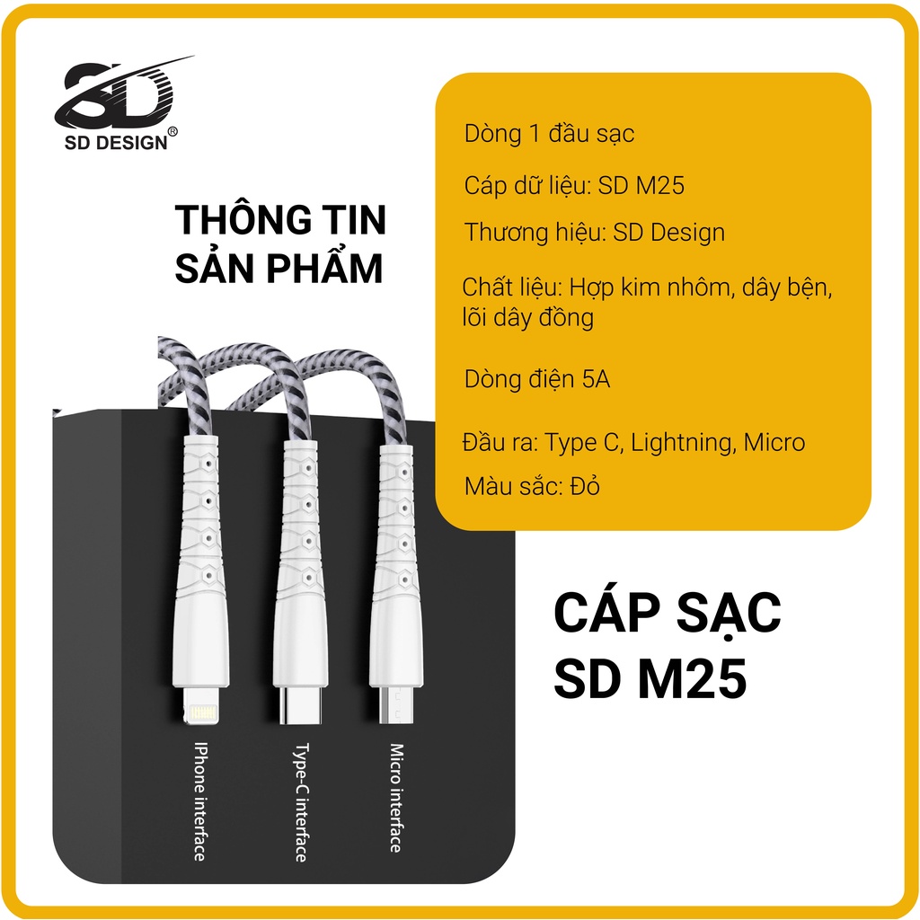 Cáp sạc chính hãng SD DESIGN M25 với thiết kế mới trẻ trung, sạc và truyền dự liệu nhanh chóng, bảo hành 1 đổi 1