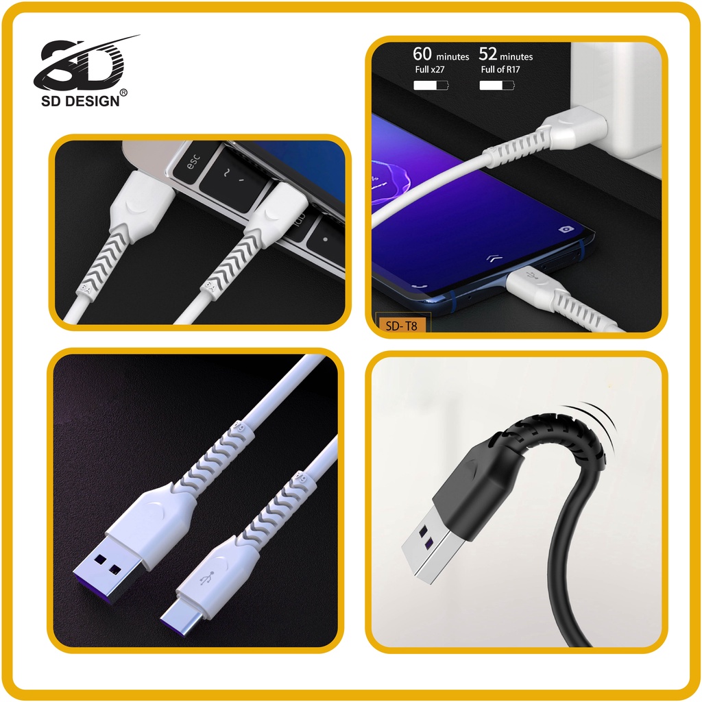 Giới thiệu Cáp sạc chính hãng SD DESIGN T8 giúp sạc nhanh, đầy đủ chân lightning Iphone, MicroUSB, Type C