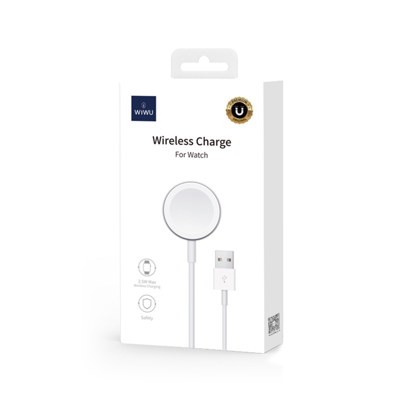 - Cáp sạc Apple Watch chính hãng WIWU Wireless Charge được thiết kế như chiếc sạc apple watch thân sạc bằng nhựa có tích hợp nam châm hút vừa phải