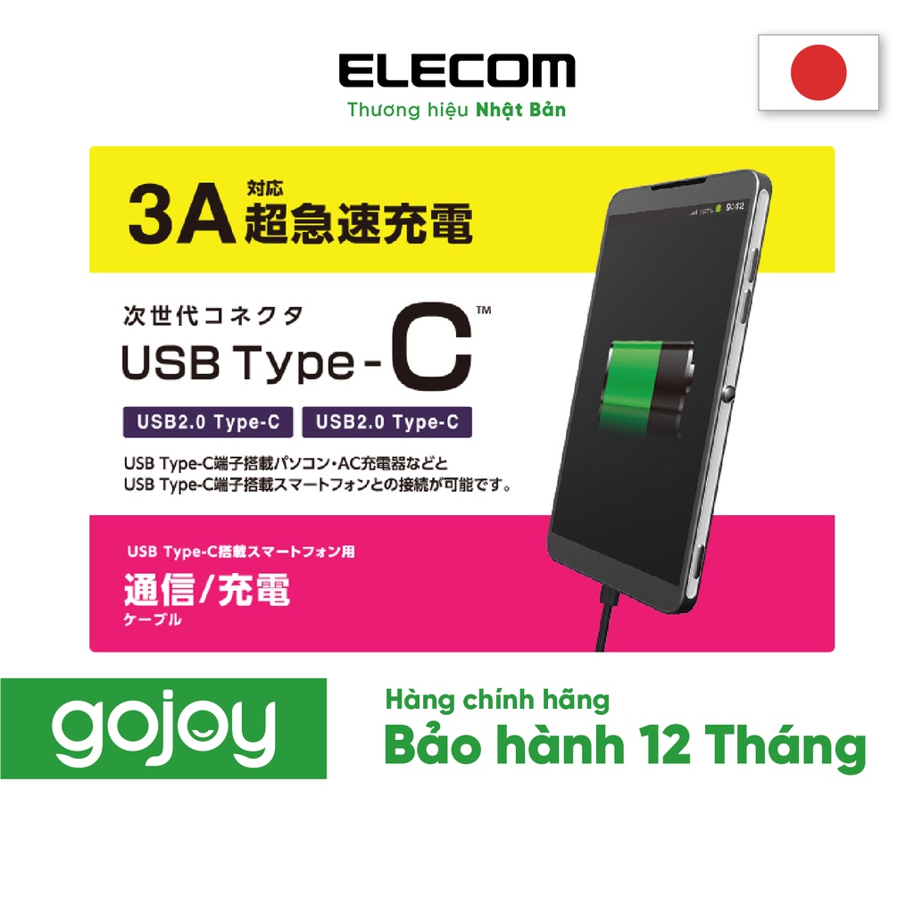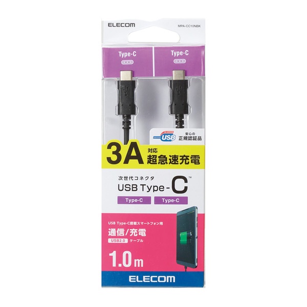 Điện Thoại & Phụ Kiện > Phụ kiện > Khác || Cáp sạc chuẩn 2 đầu C (C-C) 1m sạc nhanh màu đen ELECOM MPA-CC10NBKCòn hàng