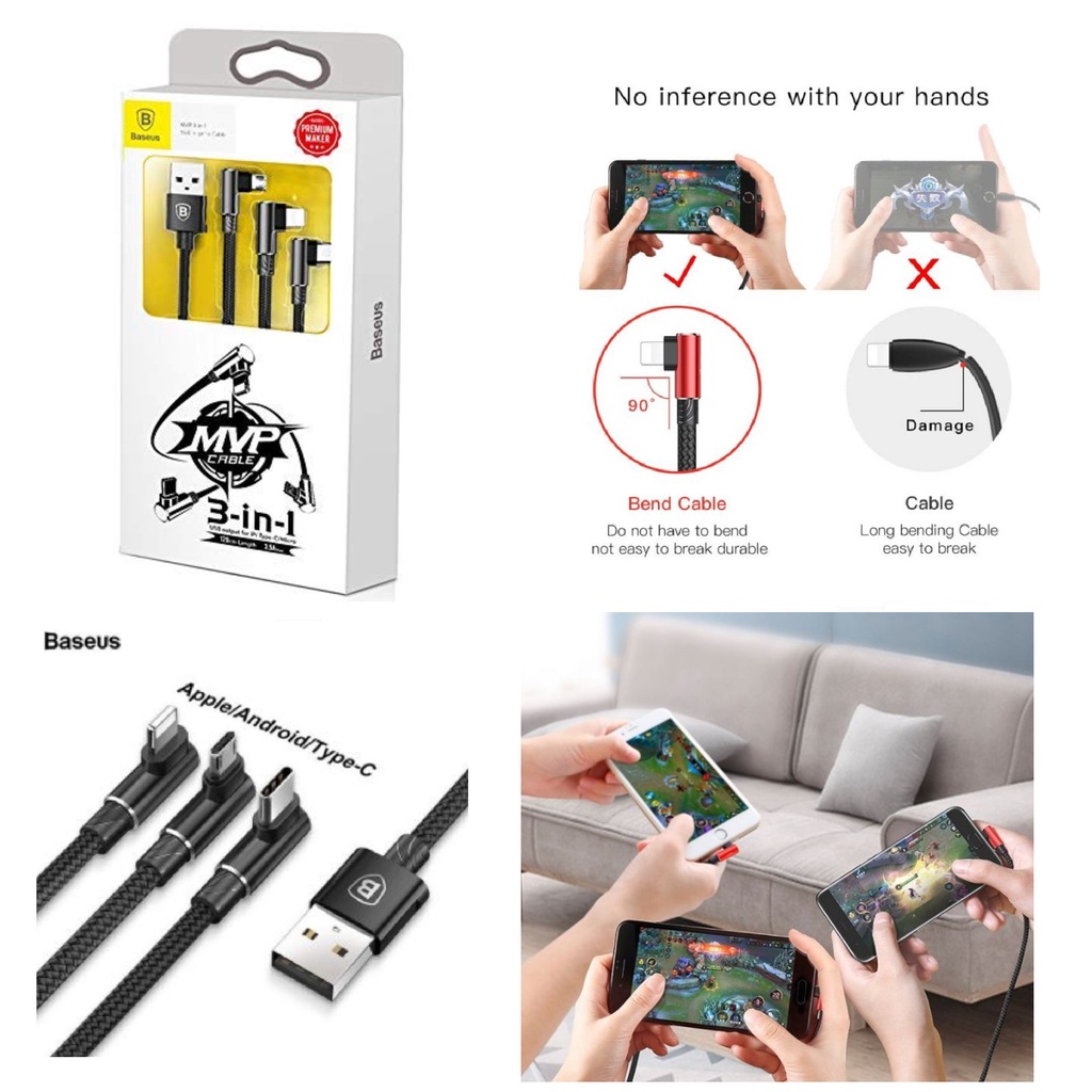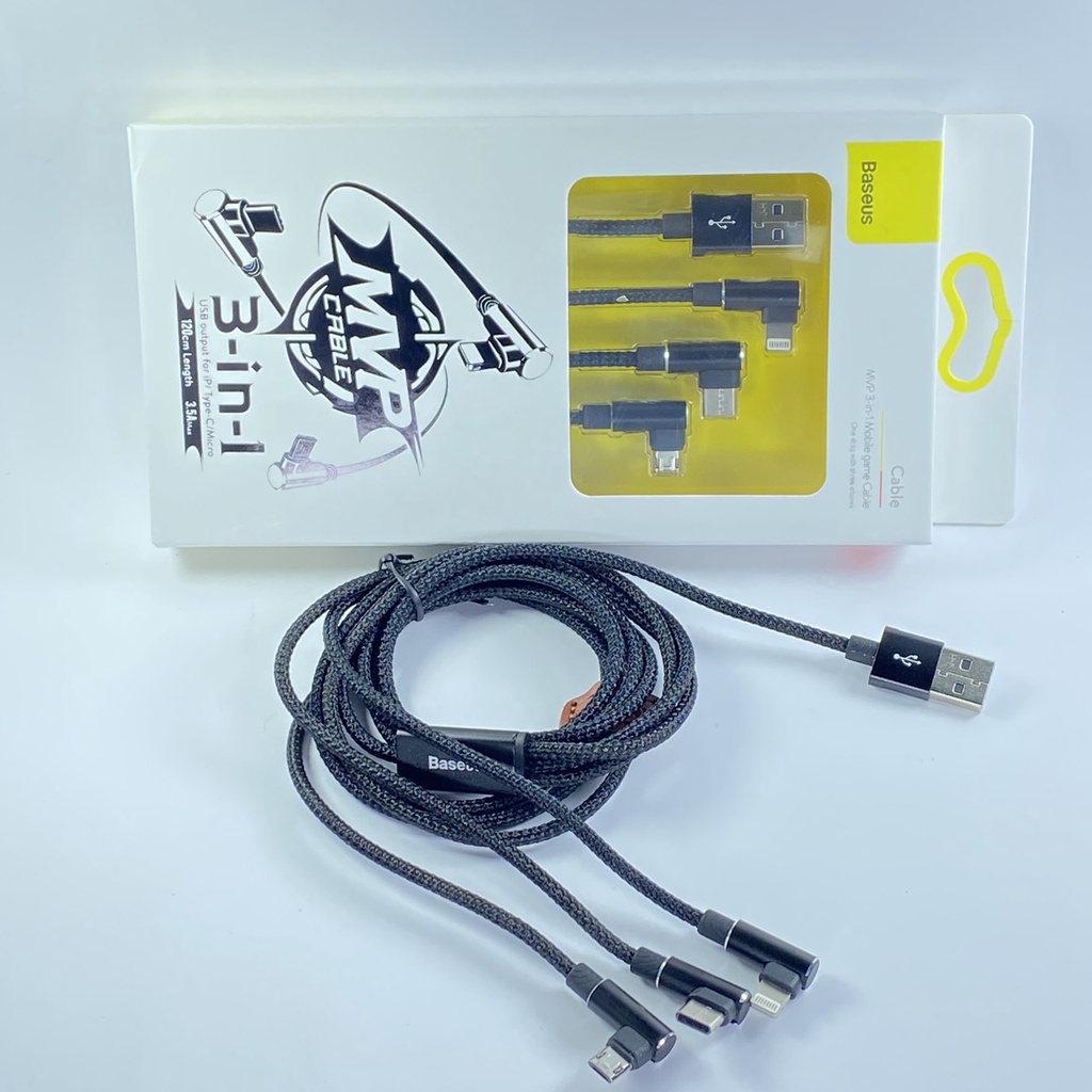 Điện Thoại & Phụ Kiện > Phụ kiện > Khác || Cáp sạc đa năng 3 đầu chữ L 90 độ Baseus MVP 3-in-1 Mobile Game Cable (Lightning + USB type C + Micro USB)Còn hàng