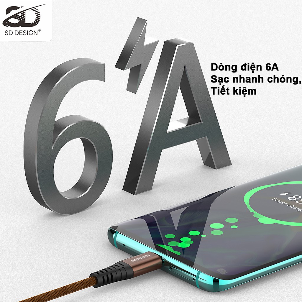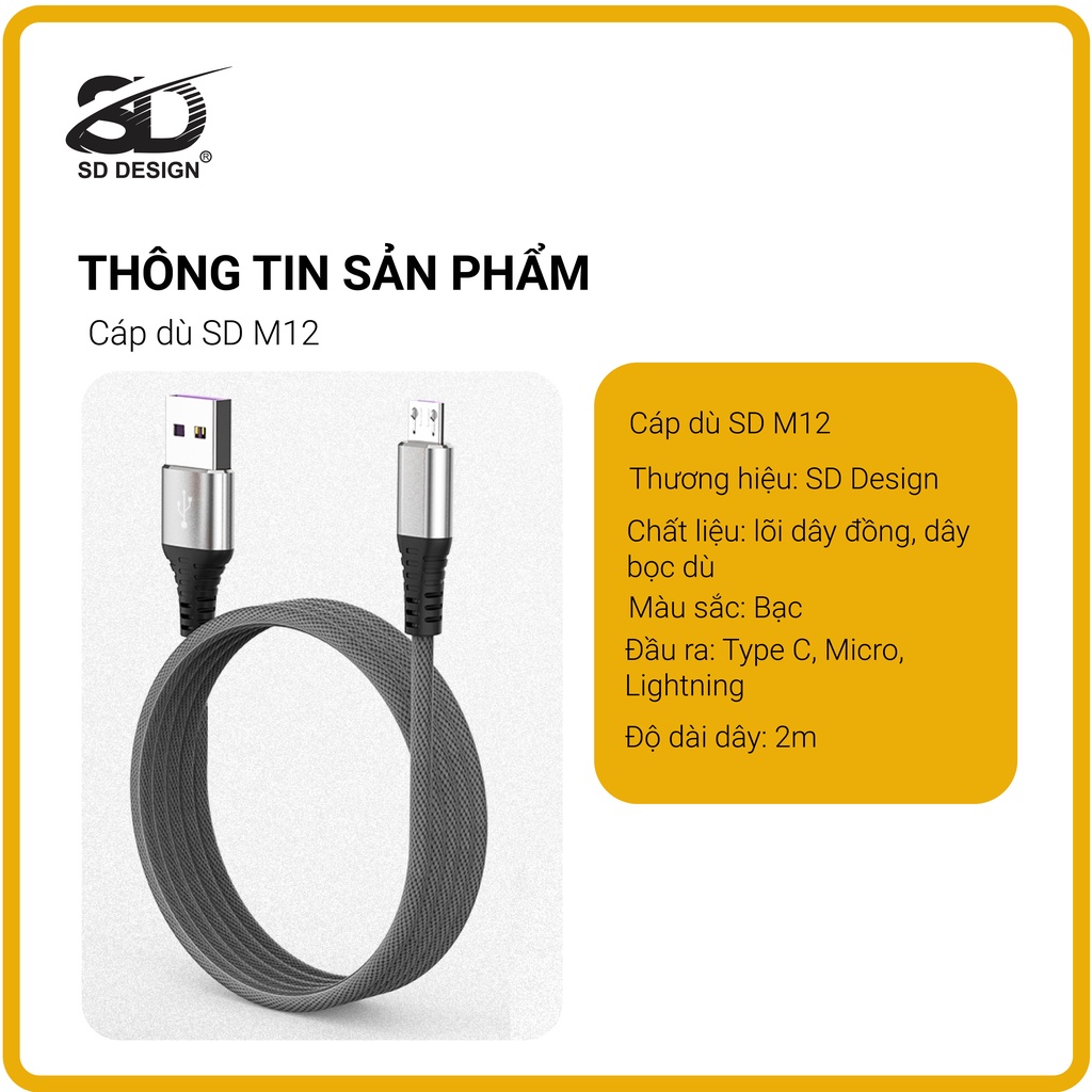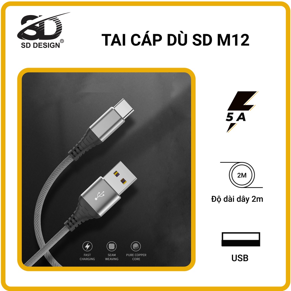 Cáp sạc dây dù chính hãng SD DESIGN M12s sạc siêu nhanh, siêu bền dùng có iphone, samsung, oppoPHỤ KIỆN SD DESIGN - CHUYÊN SỈ LẺ GIÁ GỐC PHỤ KIỆN ĐIỆN THOẠI