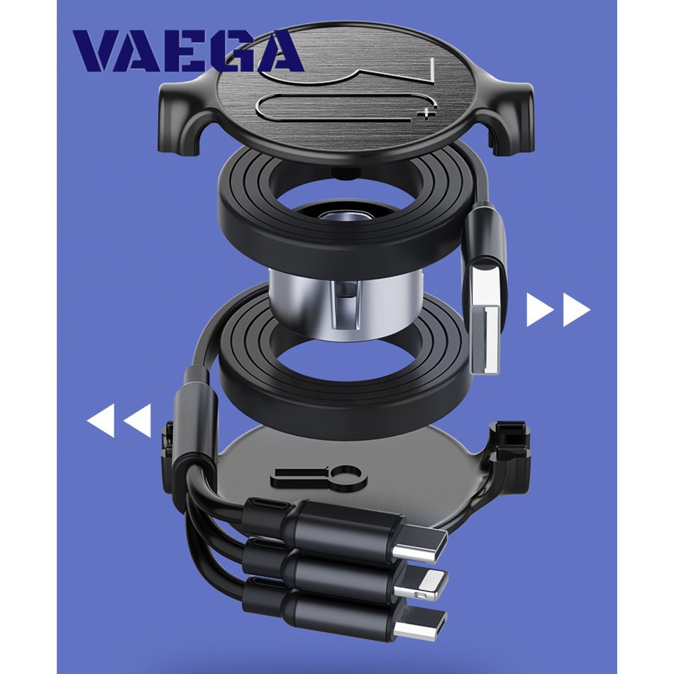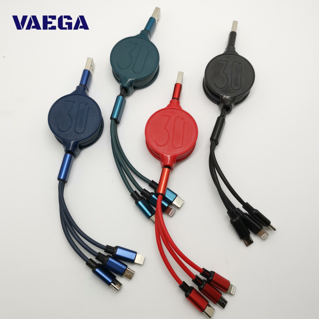 Cáp sạc dây rút 3 trong 1 thiết kế mới lạ, có thể kéo dài rút ngắn dễ dàng, 1 dây 3 đầu sạc Micro, Type-C, Lightning 5.0