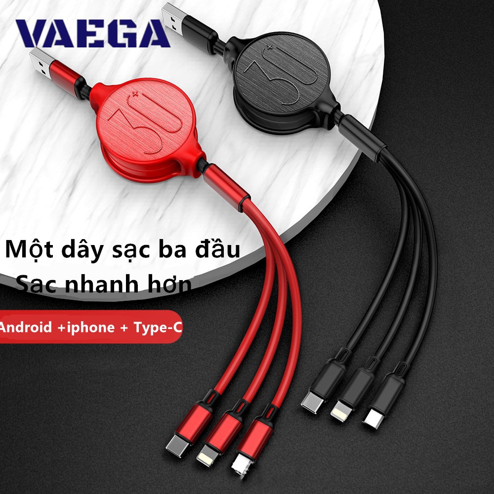Điện Thoại & Phụ Kiện > Phụ kiện > Cáp, sạc & bộ chuyển đổi > Cáp & Bộ chuyển đổi di động || Cáp sạc dây rút 3 trong 1 thiết kế mới lạ, có thể kéo dài rút ngắn dễ dàng, 1 dây 3 đầu sạc Micro, Type-C, Lightning 5.0Còn hàng