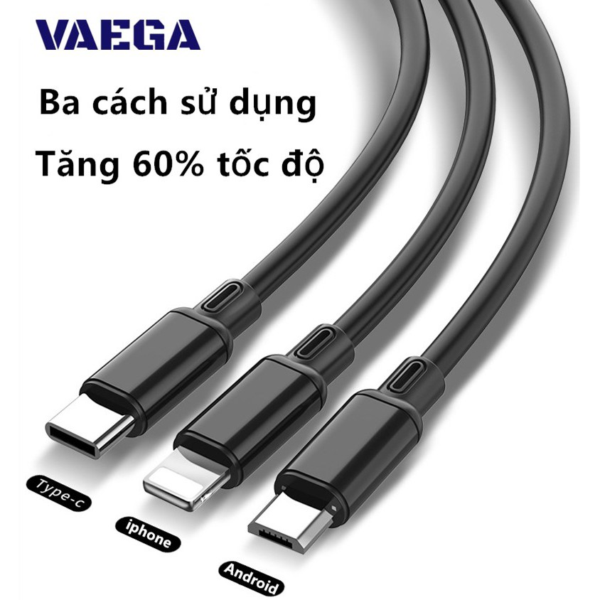- Đầu ra : MicroUSB, Type-C, Lightning (1 dây 3 đầu ra)- Chất liệu : Nhựa TPE dẻo
