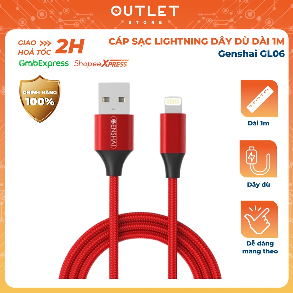 Cáp Sạc Genshai Lightning GL06 Dây Dù Dài 1M | Bảo Hành Chính Hãng 12 Tháng