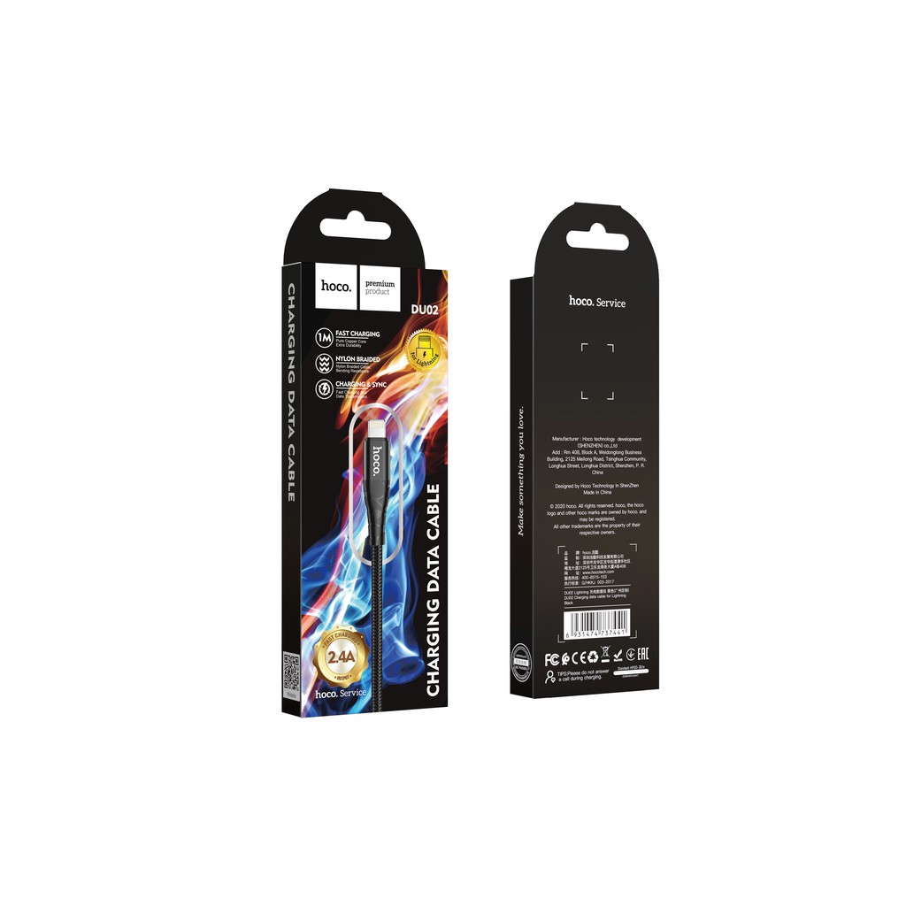 - DU02 là một trong những sợi cáp lightning, type-C - micro chất lượng dành cho các thiết bị sạc đến từ thương hiệu Hoco. Không chỉ khiến người dùng hài lòng về thiết kế, độ bền mà sợi cáp còn cho khả năng sạc nhanh hơn, ổn định và đặc biệt an toàn hơn.