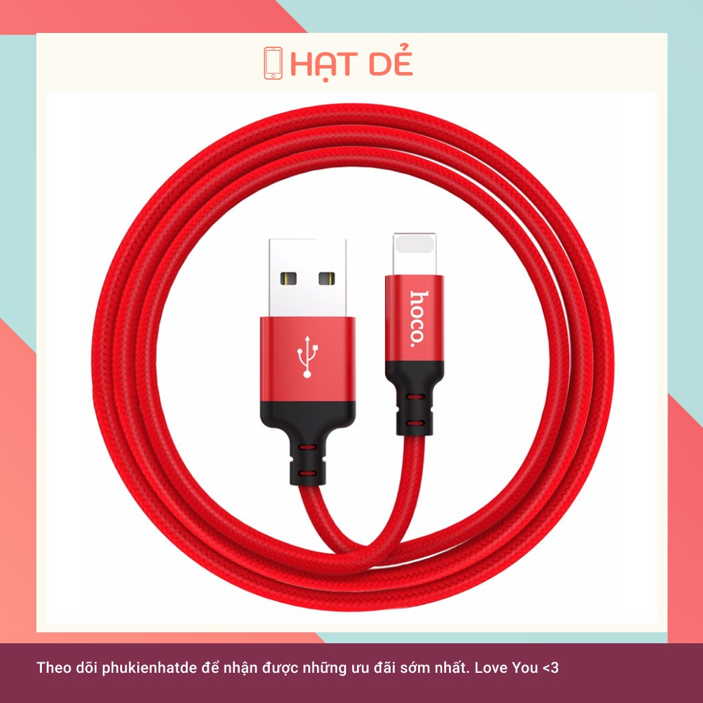 - Cáp Sạc Hoco X14 Dài 1M là sản phẩm mới ra lò của hãng phụ kiện Hoco. X14 được coi là phiên bản nâng cấp của cáp Hoco X2. Vẫn là dây dù nhưng dây cáp Hoco X14 được thiết kế thời trang và chắc chắn hơn, với tông màu đỏ và đen nổi bật. Với phiên bản lần này, cáp Hoco X14 được gia cố thêm phần đệm cao su để hạn chế tình trạng đứt cáp ngầm. Nhờ đó, thời gian sử dụng sẽ được lâu hơn.