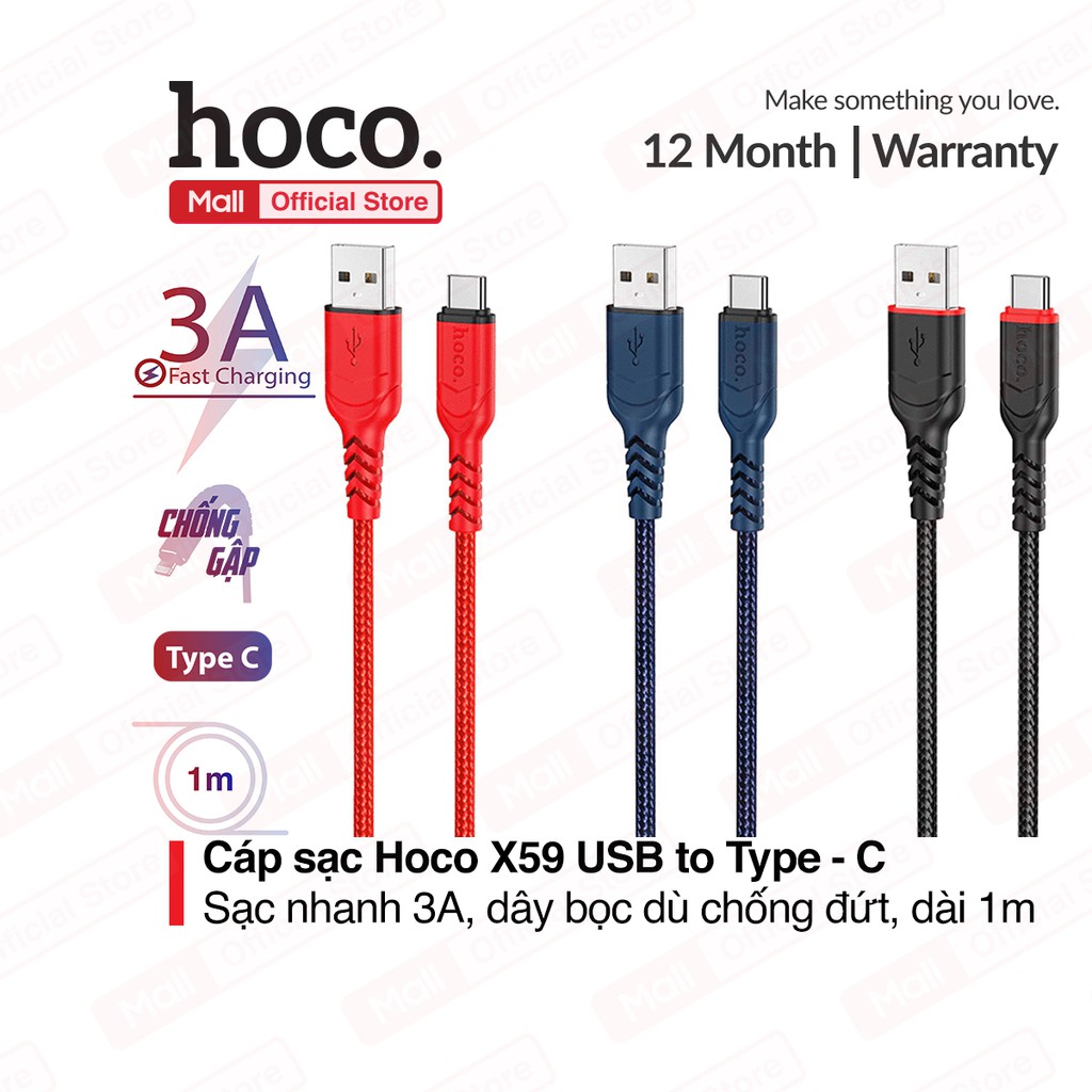 Cáp sạc Hoco X59 USB to Type-C sạc nhanh 3A, đầu sạc chống gẫy gập, hỗ trợ truyền dữ liệu dành cho điện thoại dài 1m