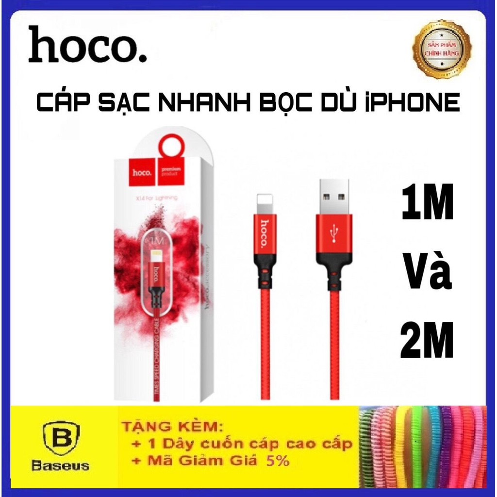 Cáp Sạc Iphone Dây Dù Hoco x14 Lighting Iphone 1M/2M - Hỗ Trợ Sạc Nhanh, Chống Đứt - Bảo Hành Chính Hãng 12T