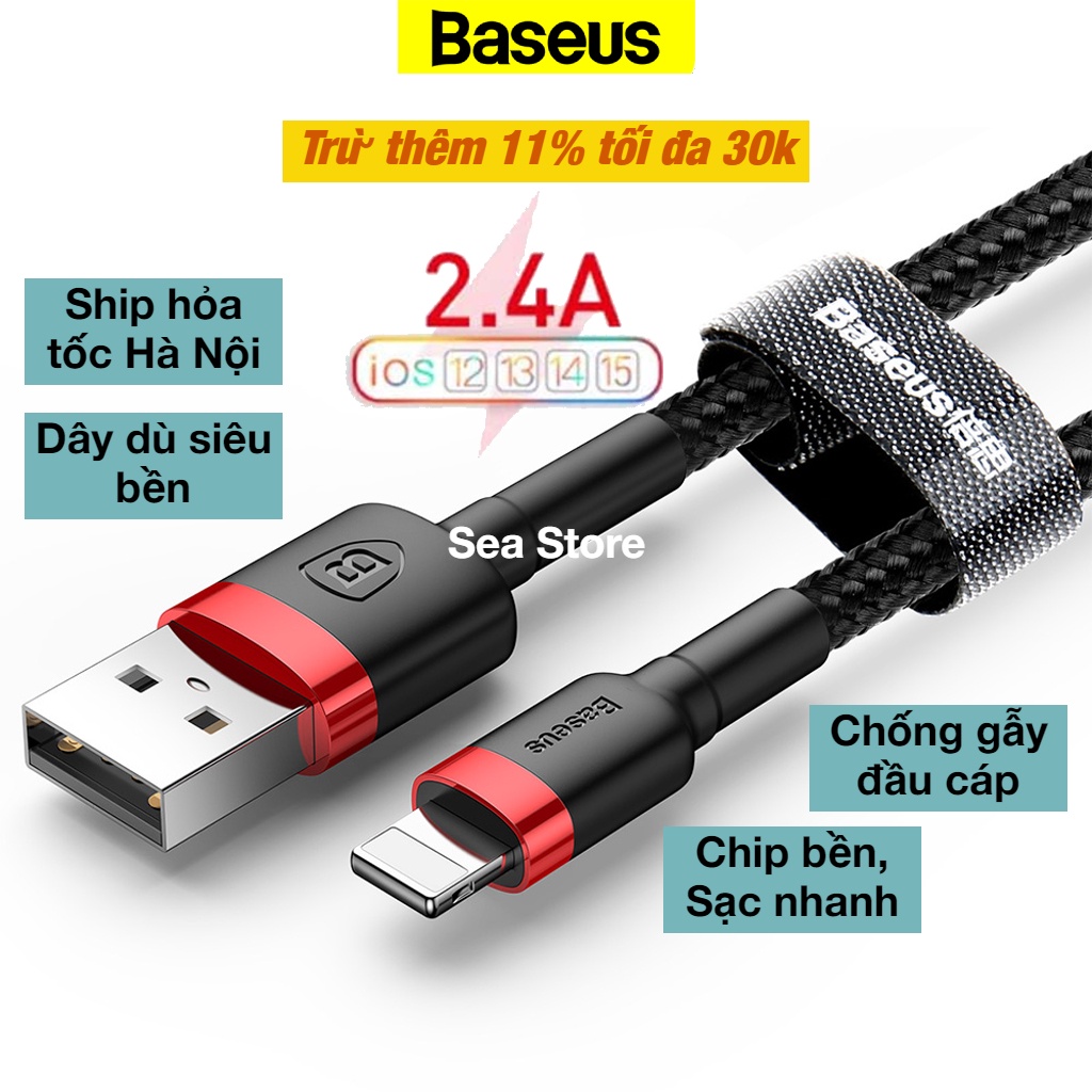 Cáp sạc iPhone - Dây sạc iPhone Baseus - Hỗ trợ sạc nhanh - Siêu bền - Chính Hãng