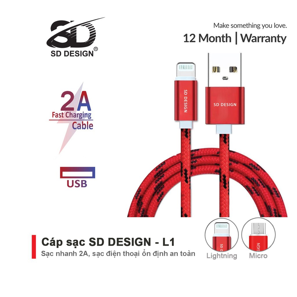 Cáp Sạc iPhone, Micro ,Type C dây dù chính hãng SD DESIGN L1 sạc điện thoại ip, samsung, oppo, xiaomi... ổn định, Bảo Hành 1 Đổi 1PHỤ KIỆN SD DESIGN - CHUYÊN SỈ LẺ GIÁ GỐC PHỤ KIỆN ĐIỆN THOẠI