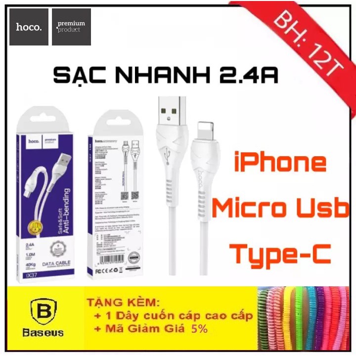 Cáp Sạc IphoneSạc NhanhCáp Sạc Hoco X37 Cho Lightning iPhone/ Micro USB/ Type-C -Dây Sạc Truyền Dữ Liệu Bảo Hành 12T