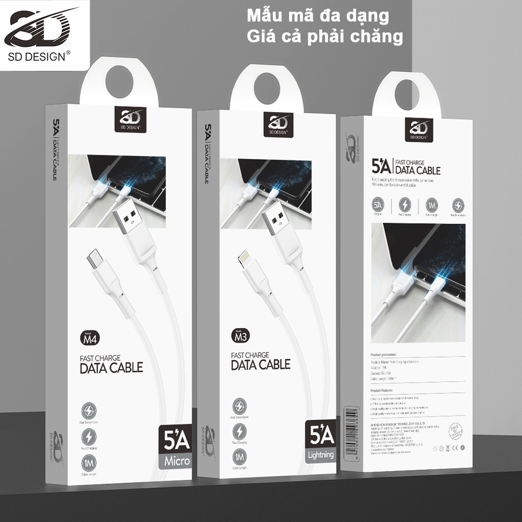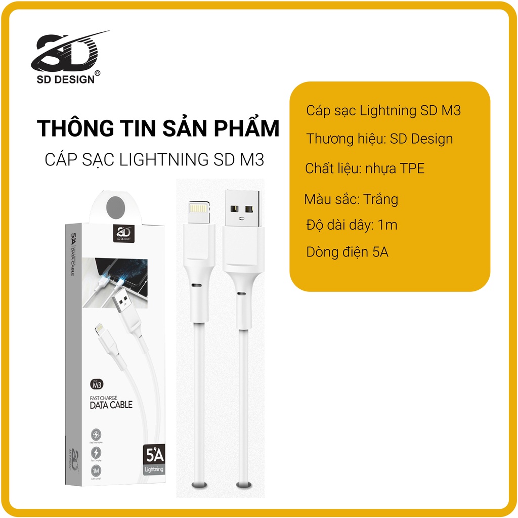 Cáp sạc Linghtning chính hãng SD DESIGN M3 - sạc ổn định, chất liệu cao cấp, bảo hành 1 đổi 1PHỤ KIỆN SD DESIGN - CHUYÊN SỈ LẺ GIÁ GỐC PHỤ KIỆN ĐIỆN THOẠI