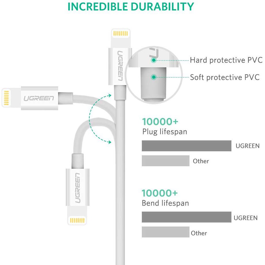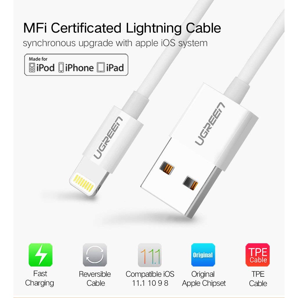 ◇ Đặc biệt cáp sạc iPhone, iPad dài 1m Ugreen 20728 đạt chứng chỉ mFi tương thích với các thiết bị của Apple. Luôn đảm bảo bạn và thiết bị của bạn trong trạng thái an toàn nhất