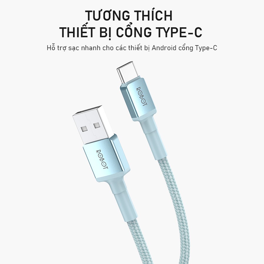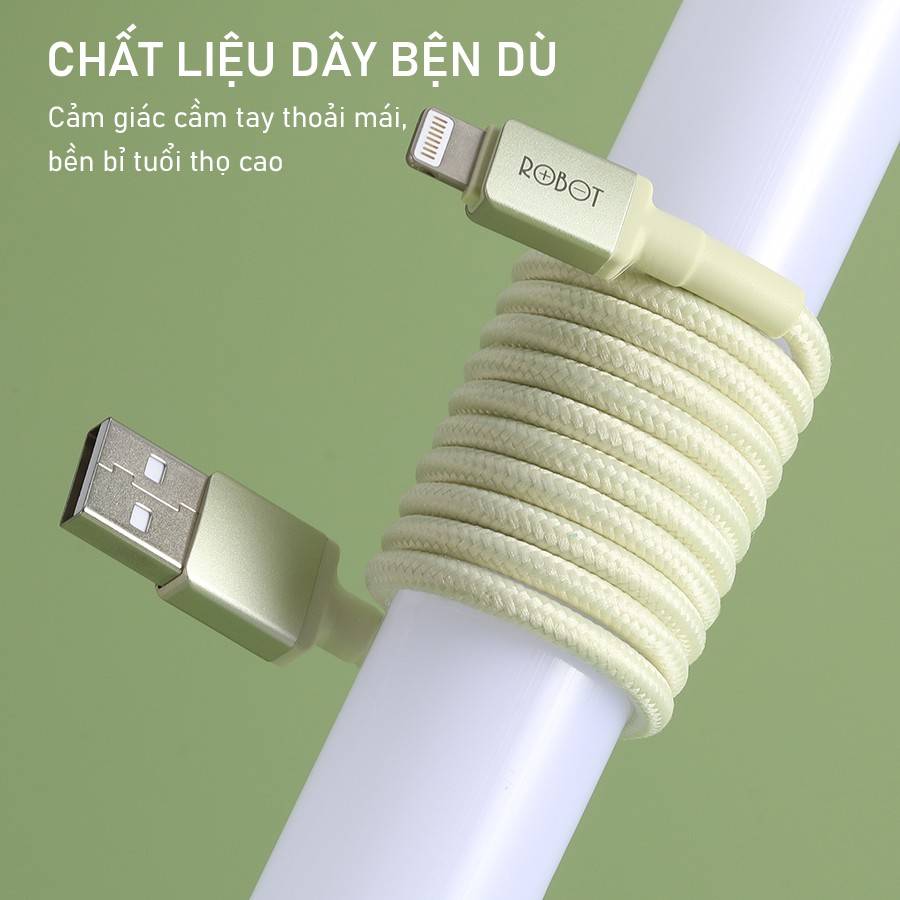 CÁP SẠC LIGHTNING/ TYPE-C/ MICRO ROBOT - CHIỀU DÀI 1M - CHẤT LIỆU DÂY BỆN DÙ CHỐNG RỐI - TƯƠNG THÍCH VỚI CÁC THIẾT BỊ APPLE/ ANDROIDSản phẩm chính hãng ROBOT