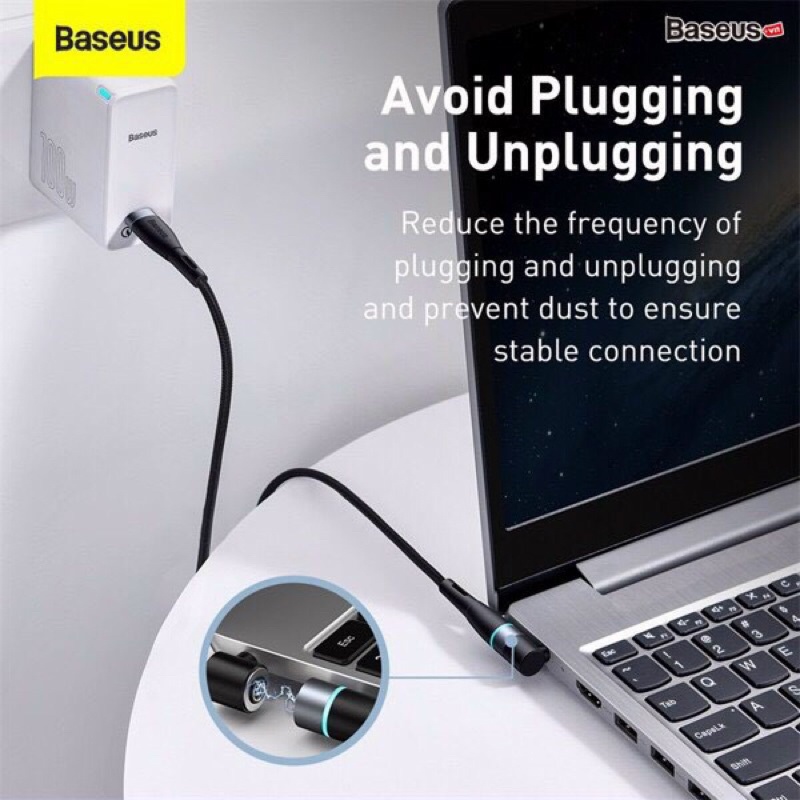 Cáp sạc máy tính nam châm Baseus sạc nhanh 100W chân cắm type -C to chân tròn(4.0 mm, 5.5 mm, 7.9 mm, vuông)