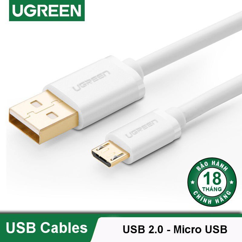 Máy tính & Laptop > Thiết Bị Lưu Trữ > USB & OTG || Cáp sạc micro USB Mạ Vàng Chính Hãng UGREEN 10851 Cao Cấp US125 (dài 3met màu trắng)Còn hàng
