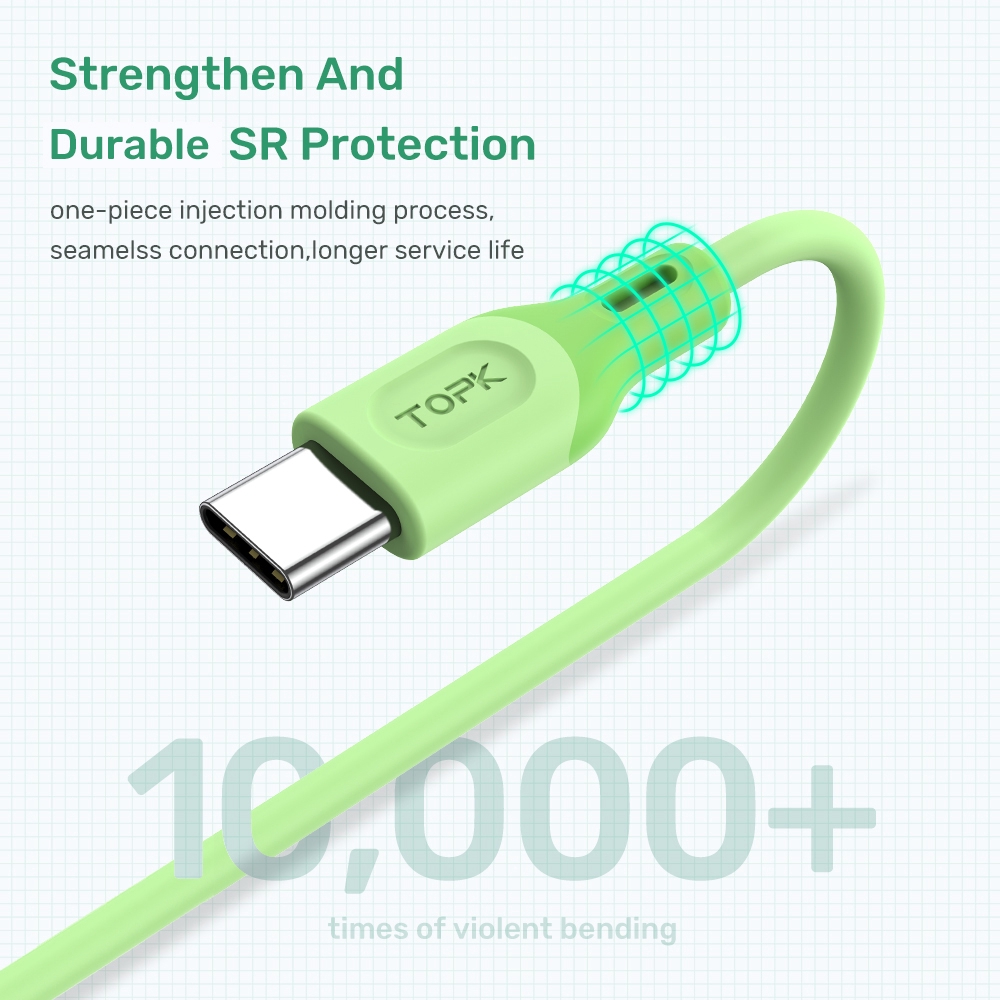Điện Thoại & Phụ Kiện > Phụ kiện > Cáp, sạc & bộ chuyển đổi > Cáp & Bộ chuyển đổi di động || Cáp Sạc Micro Usb Type C Topk An84 Làm Bằng Tpe Silicone MềmCòn hàng