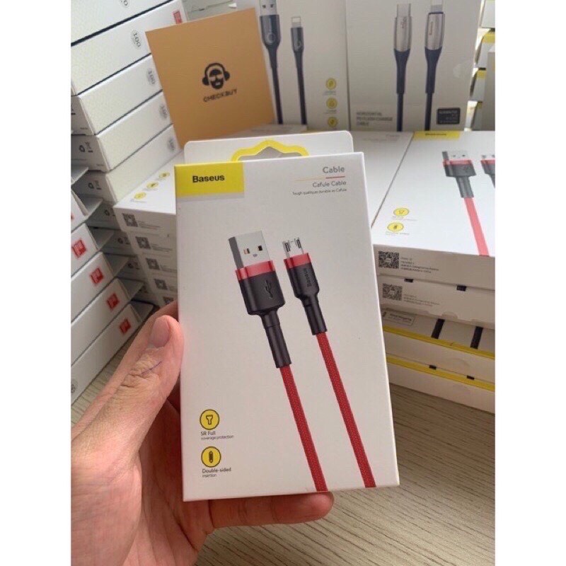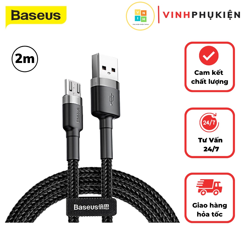 Cáp sạc nhanh 2.4A micro cho android samsung oppo chính hãng baseus dây bện dù chắc chắn hỗ trợ truyền dữ liệu dài 2 mét