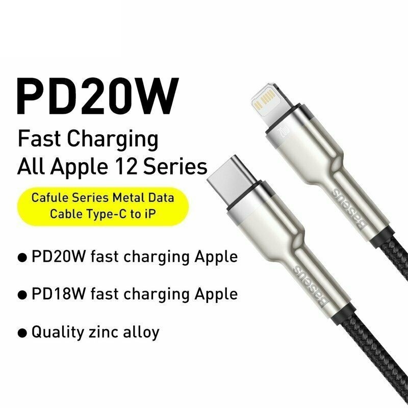 Cáp sạc nhanh Baseus Cafule Metal Series 20W là thế hệ cáp sạc C to Lightning mới nhất của Baseus. Sản phẩm được thiết kế chuyên dụng cho dòng iPhone 12 mà Apple vừa trình làng. Đảm bảo tốc độ sạc nhanh, độ ổn định cao và tương thích tuyệt đối với dòng iPhone 12, iphone 13