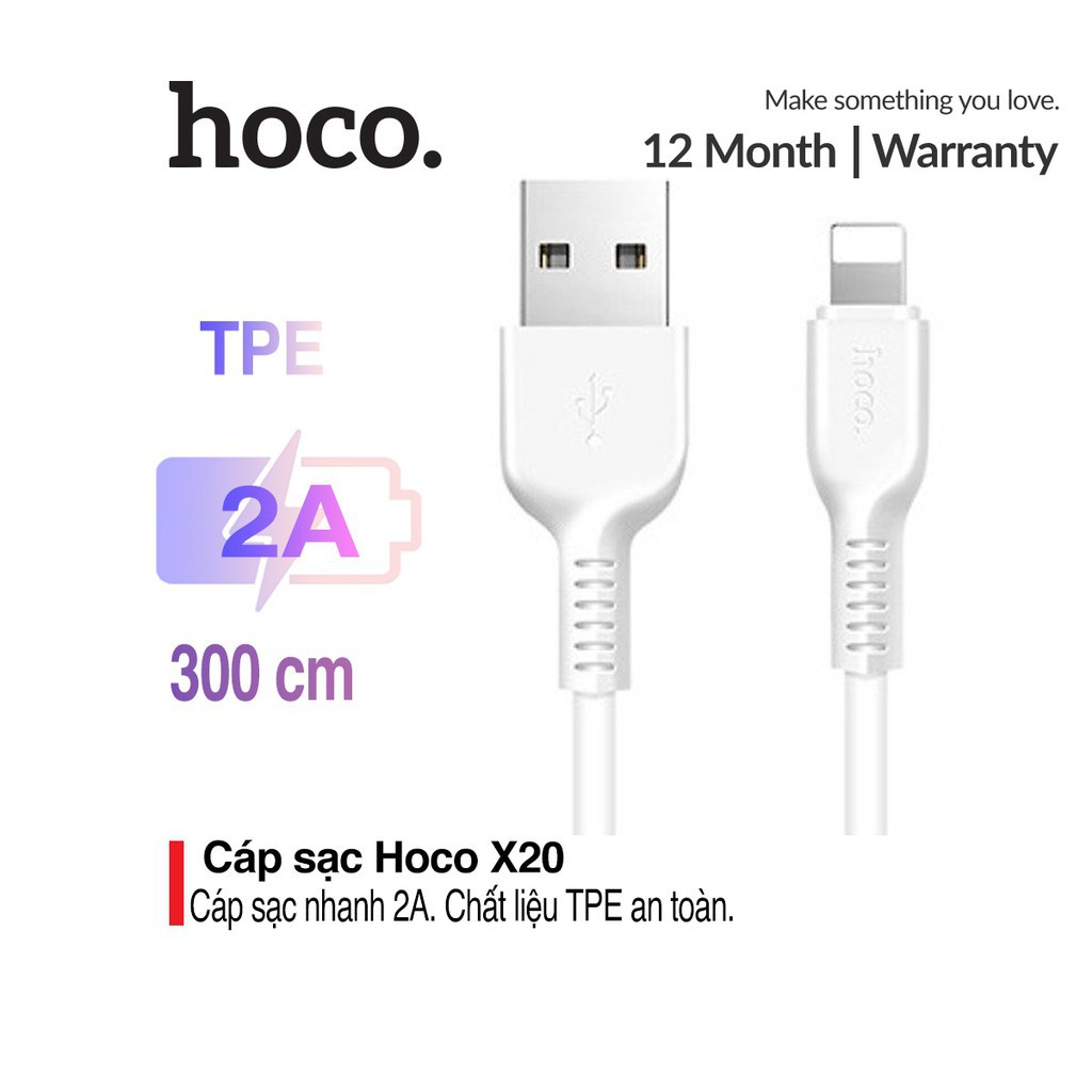 Cáp sạc nhanh 2A truyền dữ liệu Hoco X20 Lightning dây TPE chắc chắn dài 1M/2M/3M cho iPhone/iPad"Bảo hành: 12 tháng, 1 đổi 1 trong tháng đầu nếu lỗi do nhà sản xuất.